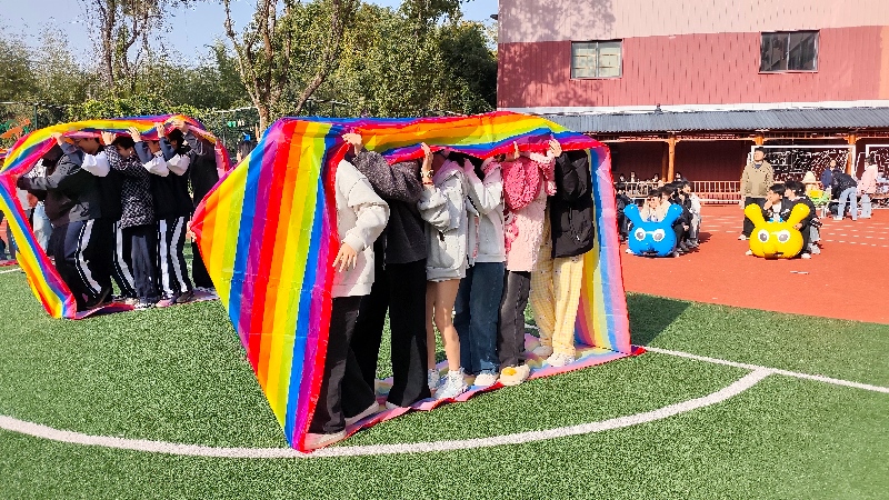 拔河比赛现场气氛热烈,啦啦队的助威声和呐喊声不绝于耳。各代表队经过激烈角逐,展现了团结的力量。4×100米接力赛中,接力棒在掌心发亮,队员们默契配合,每一次精准的交接都凝聚着信任与协作。袋鼠跳接力、三人四足、蚂蚁搬家、毛毛虫、无敌风火轮等趣味集体项目,不仅考验队员们的个人能力,更体现了团队的默契配合。田径赛场上的竞争同样激烈。短跑运动员如离弦之箭,在跑道上全速冲刺;中长跑选手则以坚韧的毅力,在环形赛道上挑战自我的极限。跳高场地上,运动员助跑、起跳、腾空、落地,动作流畅舒展;铅球赛场上,沉甸甸的铅球在运动员的奋力一推中划出一道道有力的抛物线。