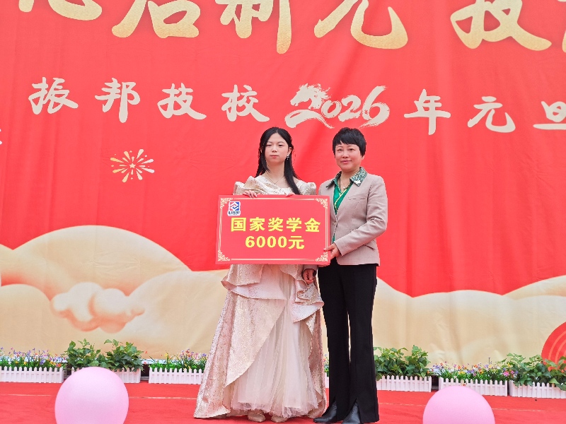 校长吴淑华为活动致辞,向全体师生送上新年祝福,并寄语同学们在新的一年里继续奋发向上、技能报国。致辞后,吴淑华校长为获得国家奖学金的邱慧凤同学颁奖,勉励她再接再厉,成为全校学子学习的榜样。