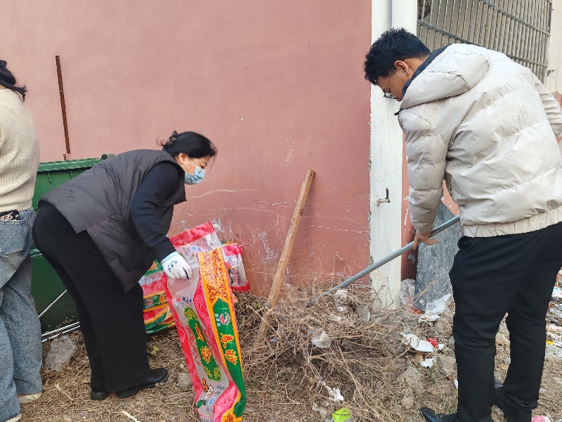 学习与总结结束后,全体党员教师与总务科工作人员、2025年全体新入团团员汇合,拿起清扫工具,共同投入到校园死角垃圾清理行动中。大家分组协作,对教学楼后、绿化带深处、围墙周边等卫生死角进行了彻底清理。师生们干劲十足,在劳动中交流互动,场面热火朝天。经过一个多小时的共同努力,校园环境变得更加整洁有序。本次活动不仅改善了校园面貌,更通过党建带团建、师生共劳动的形式,强化了党员的服务意识,提升了团员的劳动观念,在实际行动中深化了环境育人与实践育人的实效。未来,学校将继续创新活动形式,推动党建与育人工作深度融合,共同营造整洁、文明、和谐的校园环境。