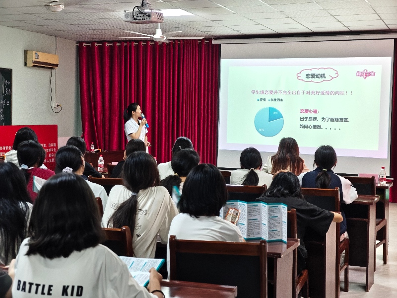 本次讲座特邀九江市柴桑区人民医院妇产科负责人、主治医师江少菊主任担任主讲。江主任围绕“爱情、性、责任”这一主题,从学生恋爱态度和性心理特点入手,深入浅出地讲解了青少年恋爱心理特征、性传播疾病现状、人工流产危害以及避孕措施选择等关键内容。