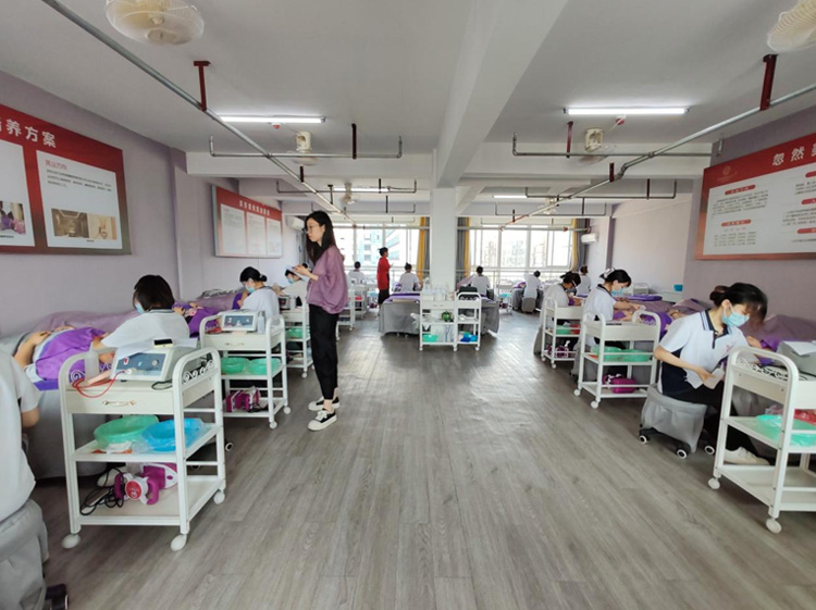 5月20日下午,九江市振邦技工学校教学楼美容美妆实训室内,一场“指尖上的美学盛宴”火热上演!23级、24级共20名美容学子同台竞技,以黑曜石眼部瑜伽为核心项目,上演了一场专业与美学的双重盛宴。