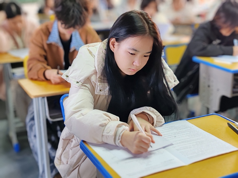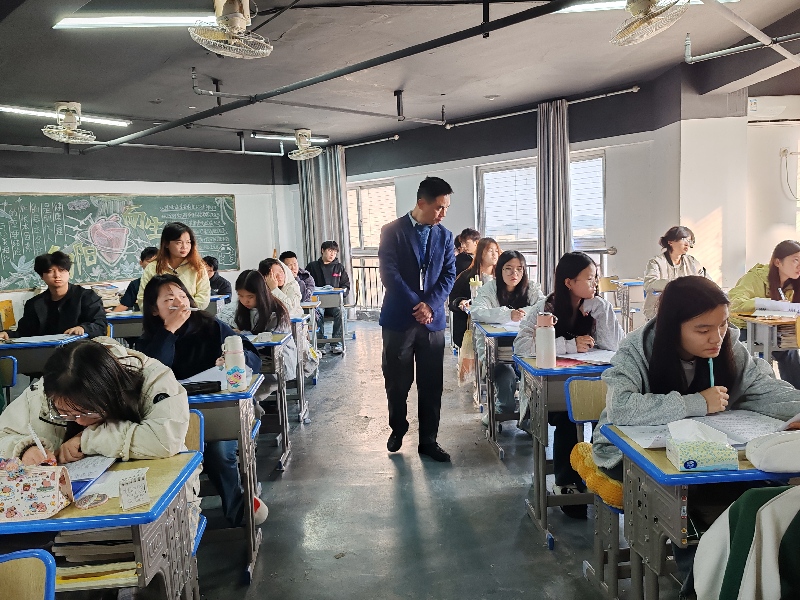 随着开考信号响起,校园归于宁静,唯有纸笔交锋的沙沙声。校领导巡视各个考场,见证同学们从容应对的身影——或凝神思考,或奋笔疾书,每个专注的表情都在诉说着对未来的期许。这场考试,考的不仅是课本里的理论知识,更是半学期来的努力与坚持。对于升学班的学子而言,每一分都凝结着通往更高学府的梦想。