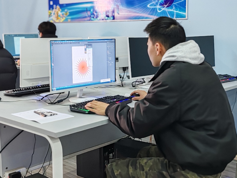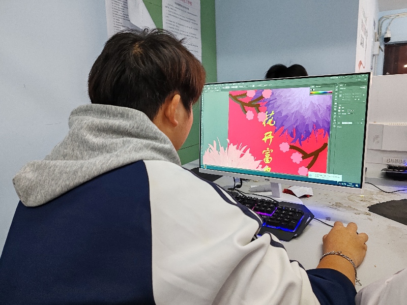 机房内键盘鼠标声此起彼伏,同学们全神贯注,将创意与技巧融入设计之中。一朵朵数字化的“牡丹”在屏幕上渐次绽放,或雍容华贵,或清新雅致,风格各异,充分展现了同学们丰富的想象力和扎实的软件操作功底。本次竞赛不仅是一次技能比拼,更是同学们展示自我、交流学习的平台。学校将持续推进“以赛促教、以赛促学”的教学模式,助力学生技能成长,为培养高素质技术技能人才不断努力。
