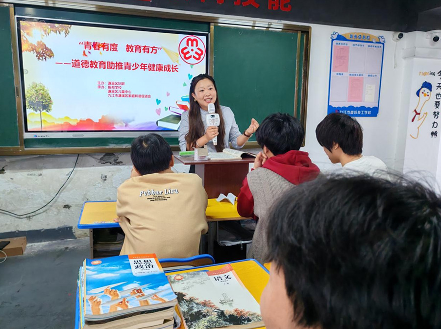 4月22日上午,一场聚焦高中生成长难题的“青春有度,成长有方”主题大课堂在九江市振邦技工学校火热开讲!本次活动由濂溪区妇联主办,九江市振邦技工学校、濂溪区儿童中心、濂溪区家庭和谐促进会联合承办,通过“主会场授课+分会场直播”的创新形式,覆盖全校师生,共同探讨如何破解网瘾、手机瘾与早恋的成长困境,助力学子轻装上阵、向阳生长。